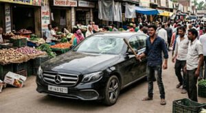 काशीपुर : नई सब्जी मंडी में मर्सिडीज गाड़ी में तोड़फोड़
