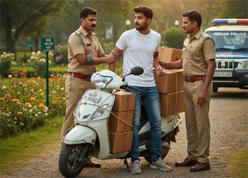 एसआई तिवारी ने बताया कि शक होने पर पलिसकर्मियों ने उसे रोककर उक्त व्यक्ति से नाम पता पूछते हुए वापस मोड़ने का कारण पूछा तो उसने अपना नाम दीपक ठाकुर (24 वर्ष) पुत्र कृष्णपाल सिंह निवासी ग्राम शक्तिखेड़ा, थाना भगतपुर (उ.प्र.)। स्कूटी में रखी गत्ते की पेटियों के संबंध में पूछा तो उसने बताया कि इसमें कफ सिरफ हैं, जिनको वह अपने मेडिकल स्टोर में ले जा रहा है। मेडिकल स्टोर के संबंध में पूछा तो कोई संतोषजनक जवाब नहीं दिया।
