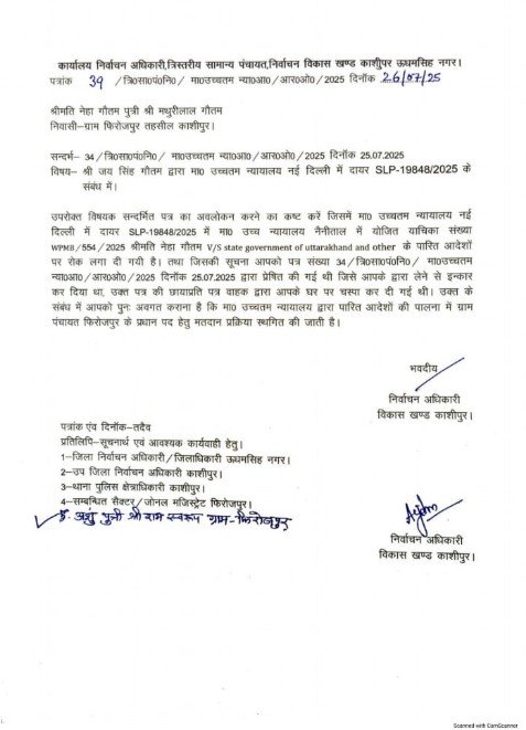 ब्रेकिंग काशीपुर : ग्राम फिरोजपुर का प्रधान पद का चुनाव स्थगित