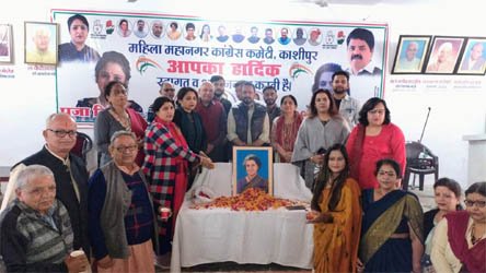 काशीपुर (महानाद) : भारत की पहली महिला प्रधानमंत्री इंदिरा गांधी की जयंती आज बुधवार को एनडी तिवारी/एससी गुड़िया कांग्रेस भवन में महिला कांग्रेस कमेटी अध्यक्ष पूजा सिंह के नेतृत्व में मनाई गई। इस दौरान समस्त कांग्रेसियों ने इंदिरा गांधी की तस्वीर पर पुष्प अर्पित कर नमन किया तथा उनकी जीवनी पर परिचर्चा की। इस दौरान विचार गोष्ठी का आयोजन किया गया जिसका संचालन तरुण लोहनी द्वारा किया गया।