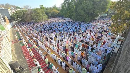 वहीं, आज ईदगाह में 8ः30 बजे हजारों की तादाद में नमाजियों ने ईद की नमाज अदा की। इस दौरान ईदगाह के पेश इमाम मुफ्ती गुलाम मुस्तफा नईमी ने कहा कि ईद सिर्फ त्यौहार ही नहीं है बल्कि भाईचारे, इंसानियत और मौहब्बत का पैगाम देने का दिन है। उन्होंने इस दौरान मुल्क के लिए शांति, अमन, भाईचारा बने रहने के लिए दुआ की तथा गरीबों, जरूरतमंदों, यतीमों की मदद करने अपील करने के साथ-साथ उनके लिए भी दुआ मांगी। इसके बाद सभी ने एक दूसरे के गले मिलकर एक दूसरे को ईद की मुबारकबाद दी। इस दौरान पुलिस की चाक चौबंद सुरक्षा व्यवस्था देखने को मिली।