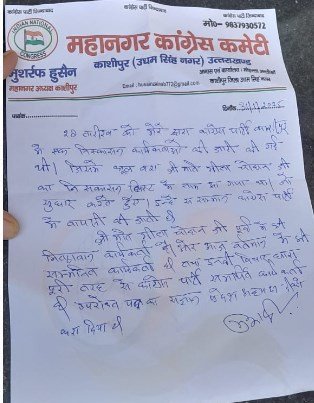 काशीपुर (महानाद) : कांग्रेस महानगर अध्यक्ष मुशर्रफ हुसैन ने भूल सुधार करते हुए कांग्रेस नेत्री गीता चौहान निष्कासन रद्द कर उनकी ससम्मान पार्टी में वापसी करवाई है।