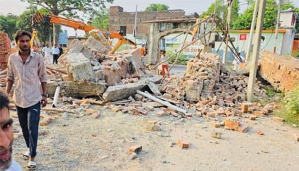 काशीपुर (महानाद) : नोटिस जारी होने के बाद मुस्लिम समाज के लोगों ने श्मशान घाट के सामने कब्रिस्तान में अधूरे पड़े गेट को खुद ही तुड़वा दिया। बता दें कि एक मजदूर की जान जाने के बाद उक्त खूनी दरवाजे का निर्माण रुकवा दिया गया था, तब से यह अधूरा ही पड़ा था और मुकदमे का फैसला आने के बाद प्रशासन ने कब्रिस्तान कमेटी को इस तोड़ने का आदेश दिया था, जिसके बाद कमेटी ने कल उक्त दरवाजे को बुलडोजर की मदद से इस तोड़ दिया। वहीं प्रशासन ने आज अपना बुलडोजर लगाकर उक्त अवैध निर्माण के बचे हिस्से को भी पूरी तरह से ध्वस्त कर चक रोड को एकदम साफ कर दिया।