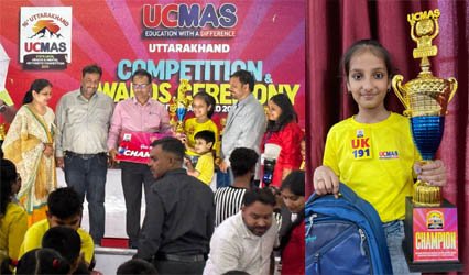 आपको बता दें कि दिनांक 20 अप्रैल 2025 कोUCMAS की 16th ABACUS & Mental Arithmetic Competition का उत्तराखण्ड प्रदेशस्तरीय आयोजन पन्तनगर कृषि विश्वविद्यालय, पंतनगर में किया गया जिसमें काशीपुर की सानिध्या त्रिपाठी ने Level 1 में प्रदेश में सर्वाधिक अंक प्राप्त कर चैम्पियनशिप जीत ली। गणित की इस प्रतियोगिता में केवल 8 मिनट में 200 प्रश्नों को हल करने की चुनौती पेश करते हुये विभिन्न स्तरों की परीक्षाओं में प्रदेश भर से आये कुल 500 से अधिक छात्र-छात्राओं ने प्रतिभाग किया था।