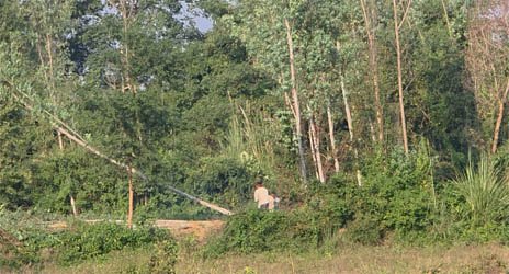 रामनगर (महानाद) : रामनगर के मालधन चौड़ क्षेत्र के मोहन नगर गांव में लकड़ी माफियाओं का आतंक थमने का नाम नहीं ले रहा है। खुलेआम कटर मशीनों से यूकेलिप्टस के हरे-भरे पेड़ों को दिनदहाड़े काटा जा रहा है, जबकि सिंचाई विभाग के अधिकारी मूकदर्शक बने बैठे हैं।