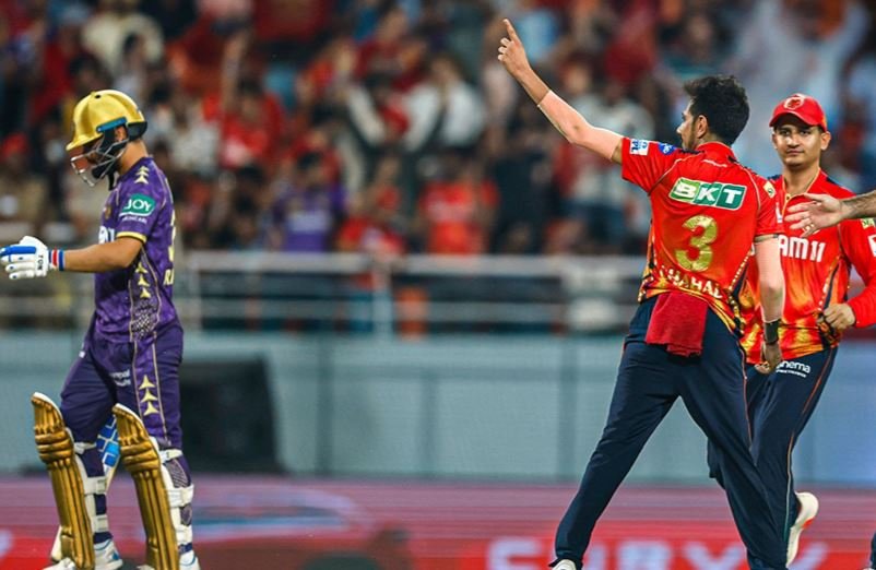 अंगकृष 37 रन बनाकर चहल की गेंद पर ही आउट हुए। ग्लेन मैक्सवेल ने वेंकटेश अय्यर का विकेट लिया। चहल ने लगातार दो गेंद पर रिंकू सिंह और रमनदीप सिंह को आउट कर केकेआर का स्कोर 76 रन पर 7 विकेट कर दिया। 79 के स्कोर पर हर्षित राणा भी आउट हो गए। चहल के खिलाफ आंद्रे रसेल ने एक ओवर में 16 रन बना दिए। अब केकेआर के जीत के लिए 17 रन चाहिए थे और 6 ओवर बाकी थी। 15वें ओवर में अर्शदीप सिंह ने 5 डॉट गेंद डालकर आखिरी बॉल पर वैभव अरोड़ा को आउट कर दिया। अगले ओवर की अगली गेंद पर यानसेन ने रसेल को बोल्ड कर पंजाब को जीत दिला दी।