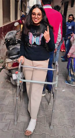 पैर में फ्रेक्चर होने के बावजूद सुहानी अग्रवाल ने किया मतदान, आप करेंगे कब