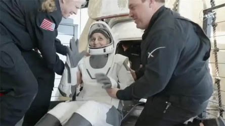 कैप्सूल से निकलने के बाद सुनीता विलियम्स और विलमोर ने कैमरे की ओर हवा में हाथ हिलाकर अपनी ख़ुशी जाहिर की। अंतरिक्ष में लगभग 286 दिन बिताने के बाद सुनीता विलियम्स और बुच विलमोर ने धरती पर ताजा हवा में सांस ली।