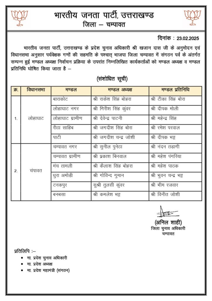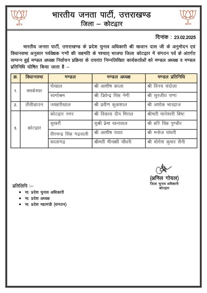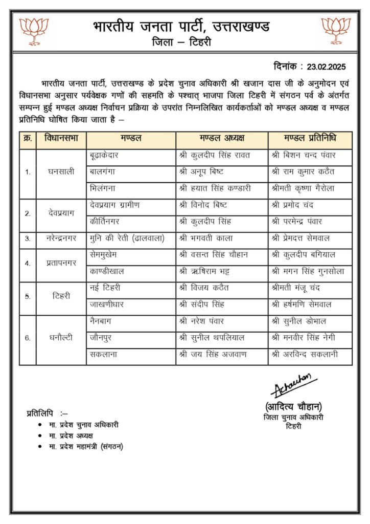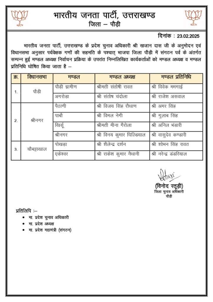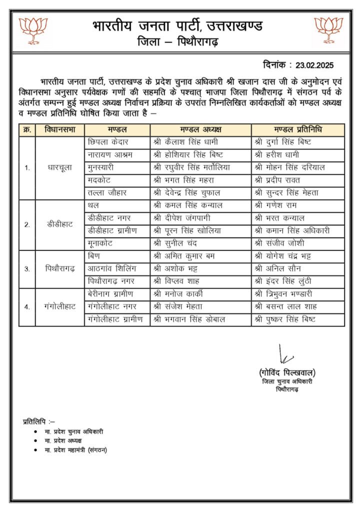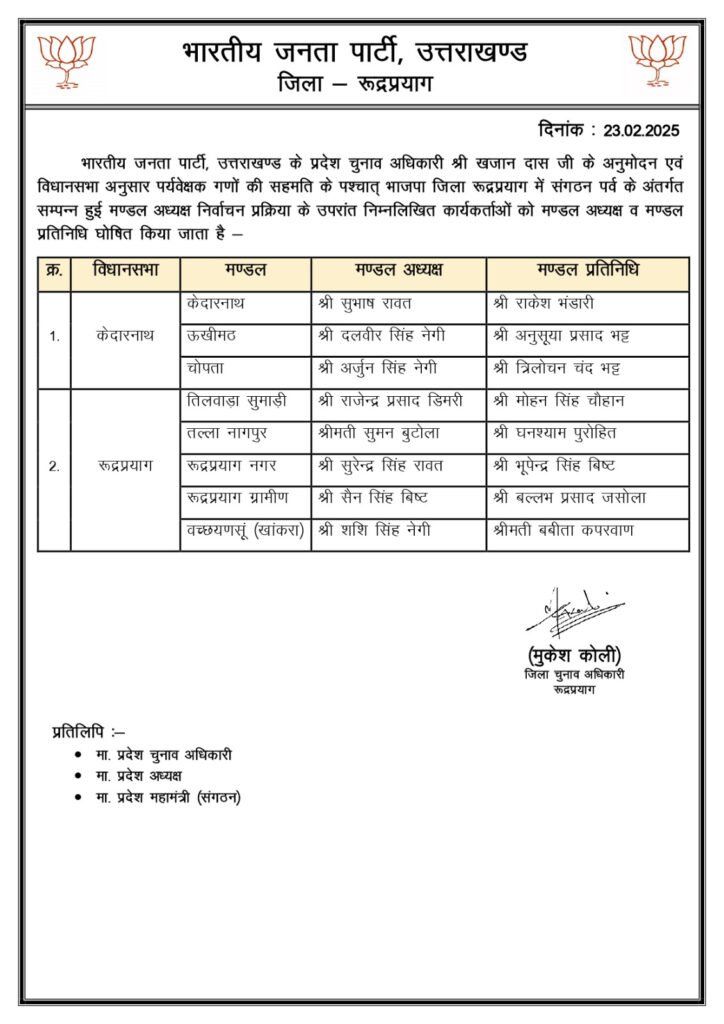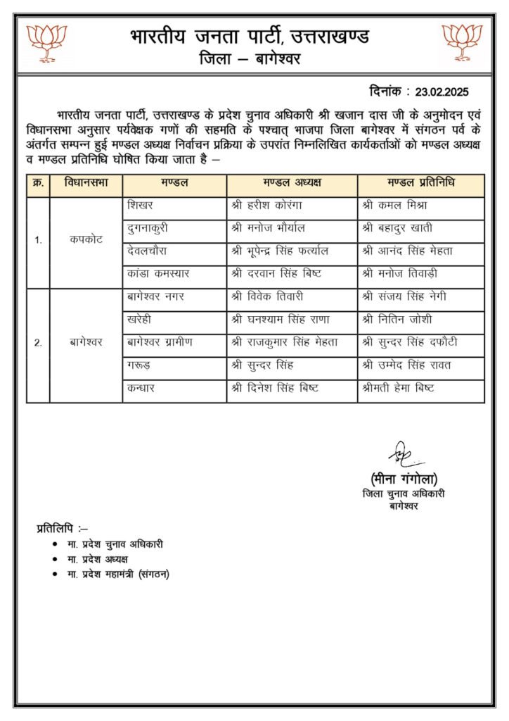 उत्तराखंड भाजपा ने जारी की जिलेवार मंडल अध्यक्षों की लिस्ट
